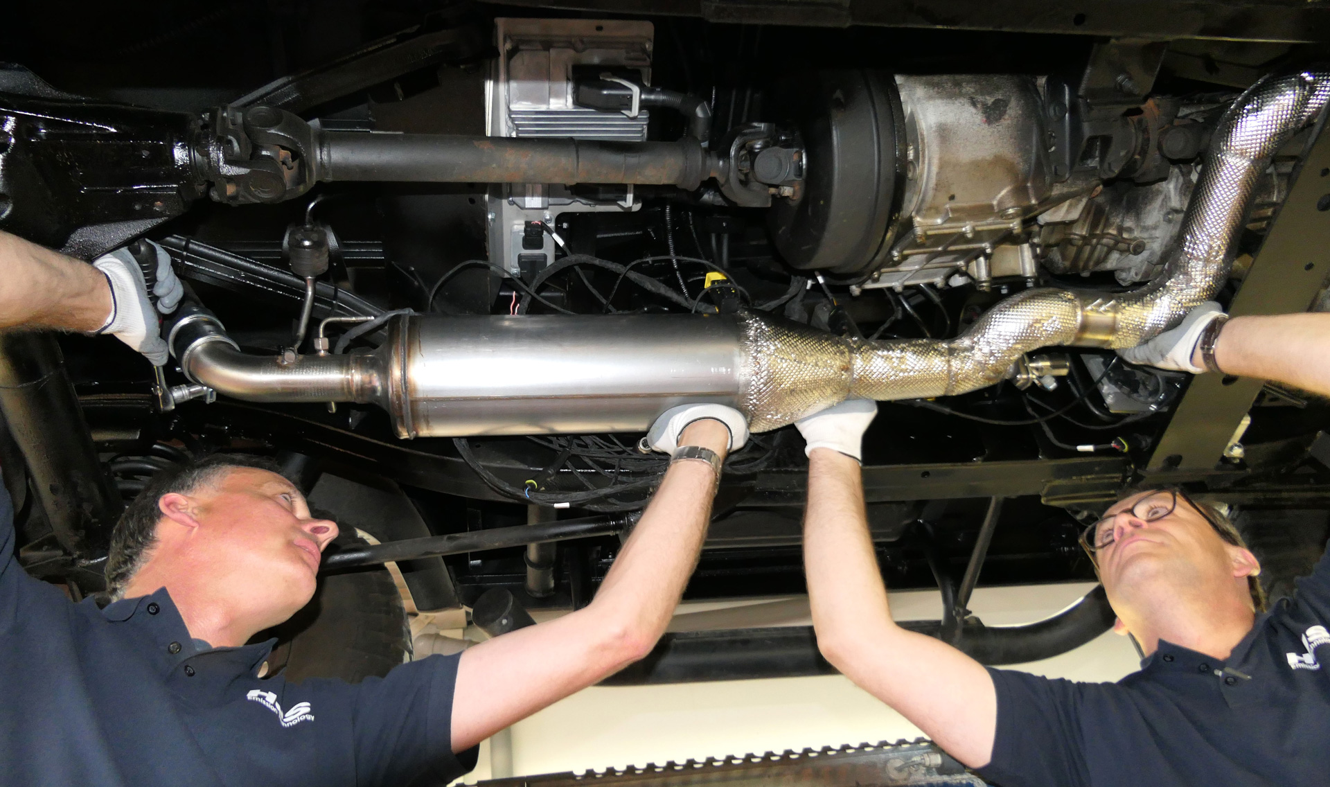 Im Regelfall wird nach den werkseitig verbauten Komponenten wie Partikelfilter oder Katalysator das SCR-System eingebaut. Hierfür kann der mittlere Schalldämpfer durch das Abgasreinigungssystem ersetzt werden. Der werkseitige Endschalldämpfer verbleibt hierbei unter dem Fahrzeug.